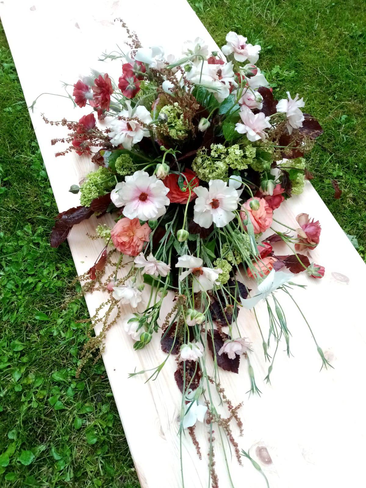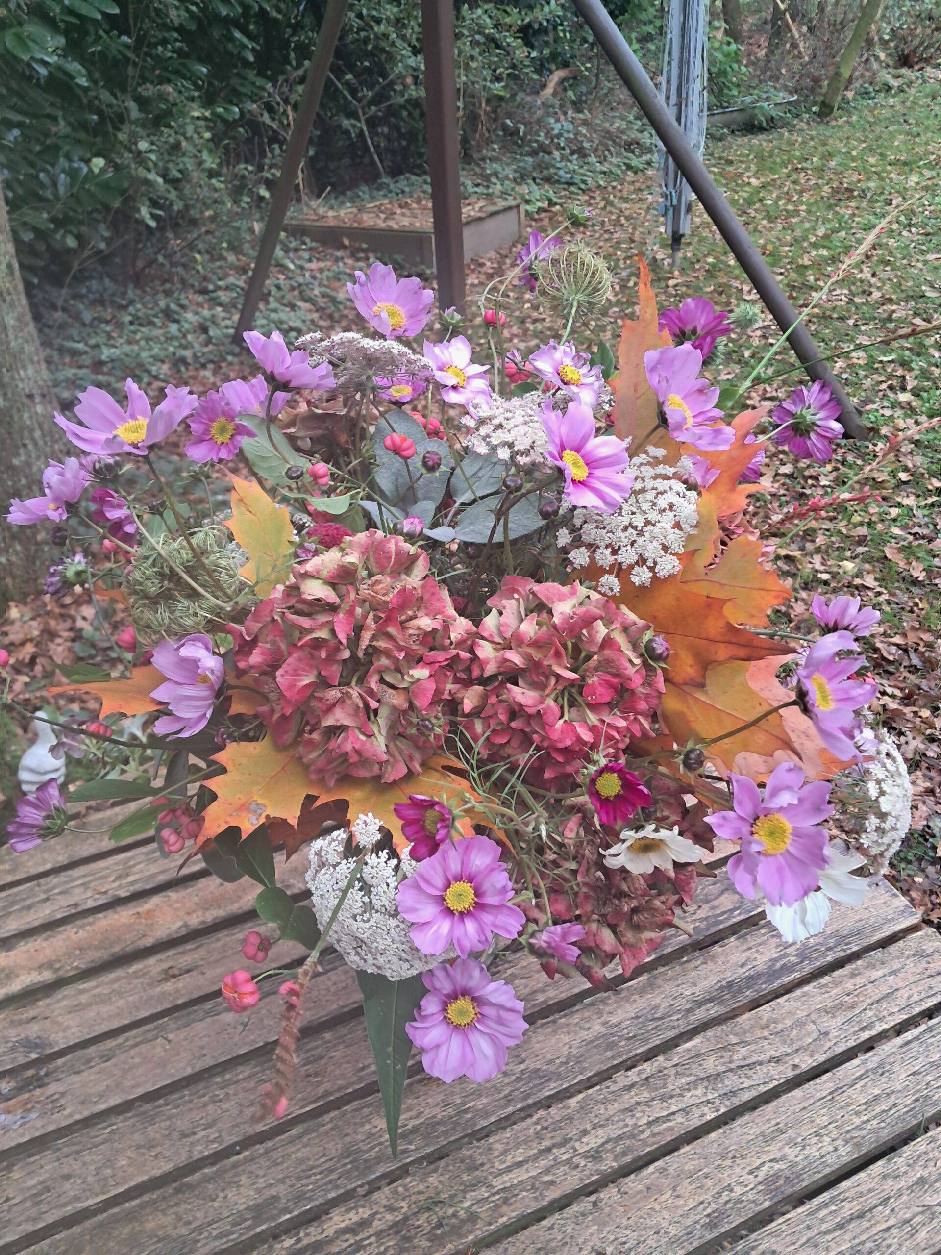 Ik werk als bloemiste voornamelijk met natuurlijke, onbespoten bloemen en materialen, uit mijn eigen regio.