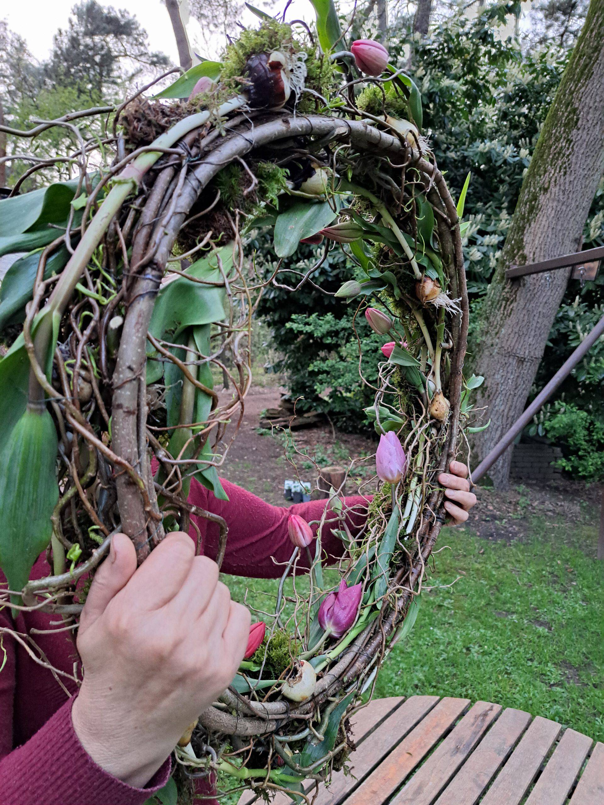 In de winter zijn het de prachtige takken uit het bos, in alle vormen en maten, die samen met mossen, bessen, droogbloemen en winterbloeiers tot kunstwerken uit de natuur worden.